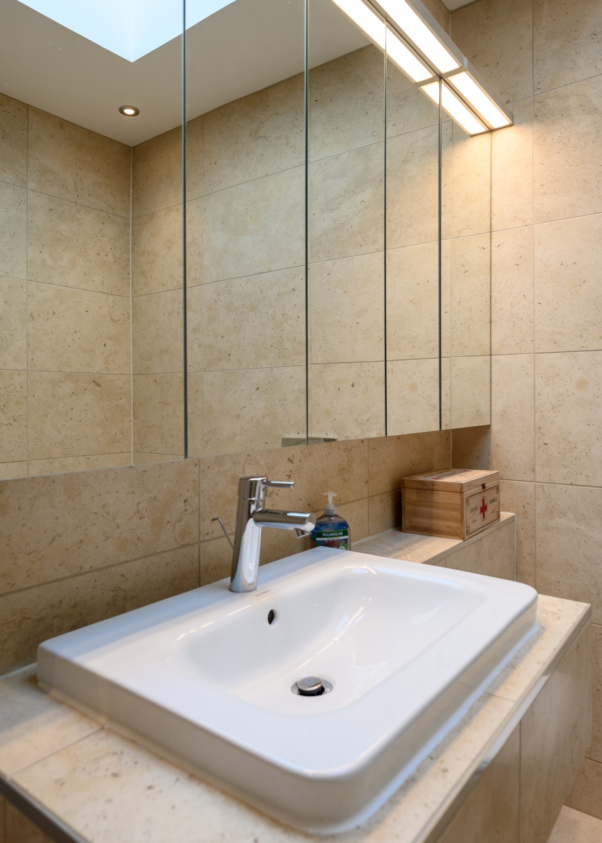 The new extension has an extensive green roof planted with a mix of sedum and wildflowers to benefit the site by restricting surface water run-off, enhancing the site's biodiversity and providing insulation via the planting medium's thermal mass.